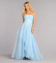 Airy Light Blue A-Line Strapless Sleeveless Zip-Back Floor-Length Prom Dresses - US 2 / UK 6 / EU 32
