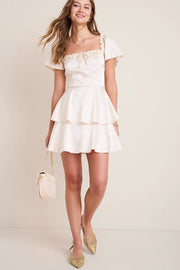 Elegant A-Line Square Neck Short Sleeve Solid Back Mini Homecoming Dresses - US 2 / UK 6 / EU 32