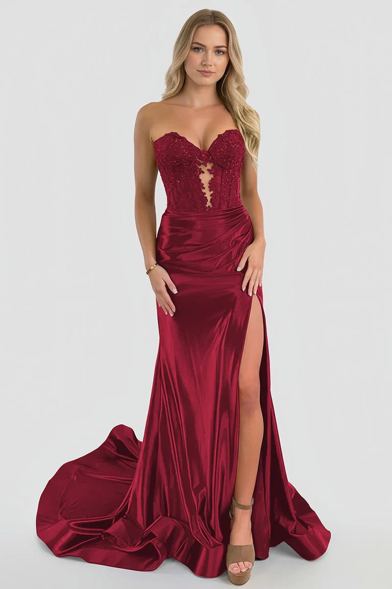 Elegant Mermaid Sweetheart Neck Sleeveless Lace Up Back Floor Length Prom Dresses