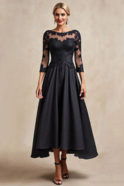 Graceful A-Line Illusion Neck Half Sleeve Zipper-Back Hi-Lo Mother of the Bride Dresses